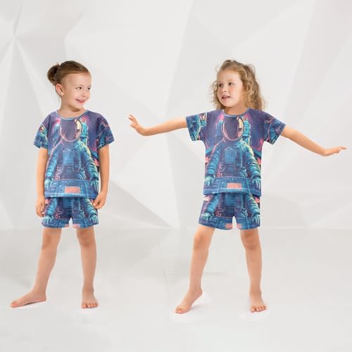 ALAZA Astronaut Driving Space Pajamas Set Short Sleeve Cotton Sleepwear Summer Pjs 2 Piece 5-14Y 2