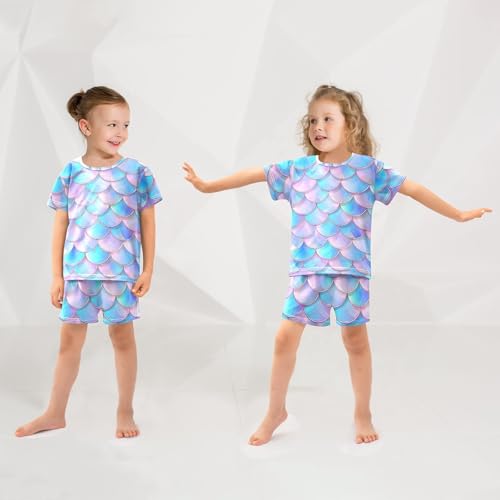 ALAZA 3D Mermaid Scales Blue Pajamas Short Sleeve 2 Piece Sleepwear Top and Bottom Pajama Set Unisex 3