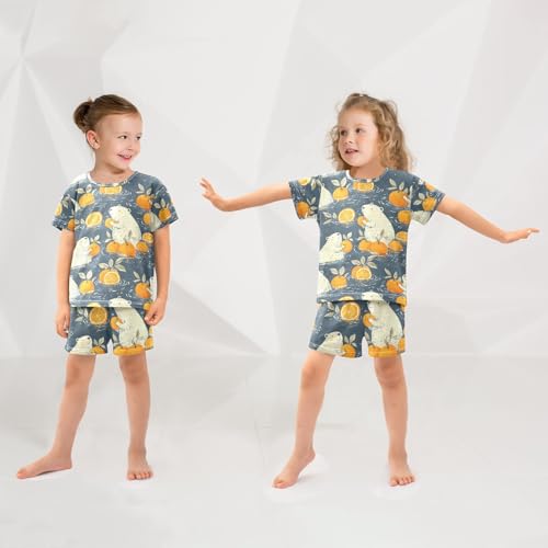 ALAZA Polar Bear Fruit Orange Pajamas Set Short Sleeve Cotton Sleepwear Summer Pjs 2 Piece 5-14Y 5