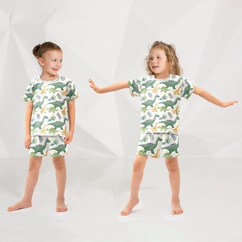 ALAZA Dinosaur Palm Tree Leaf Pajamas Set Short Sleeve Cotton Sleepwear Summer Pjs 2 Piece 5-14Y 2