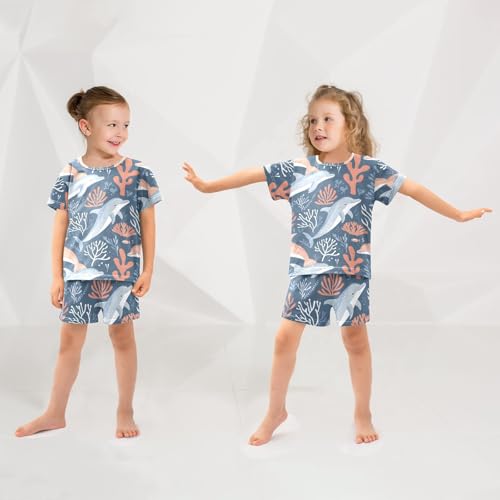 ALAZA Dolphin Coral Reef Blue Pajamas Short Sleeve 2 Piece Sleepwear Top and Bottom Pajama Set Unisex 6
