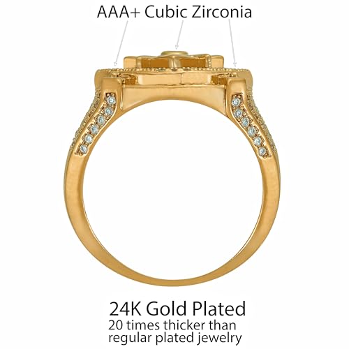 LIFETIME JEWELRY Masonic Ring 24k Real Gold Plated Blinged Out Cubic Zirconia Mens Ring 7