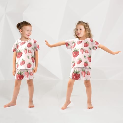 ALAZA Strawberry Watercolor Hipster Pajamas Set Short Sleeve Cotton Sleepwear Summer Pjs 2 Piece 5-14Y 1