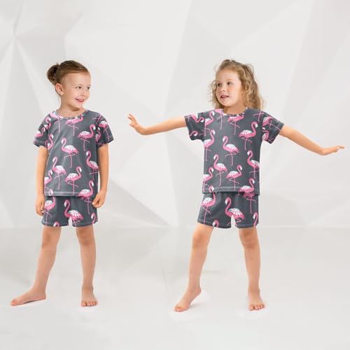 ALAZA Flamingo Bird Black Pajamas Set Short Sleeve Cotton Sleepwear Summer Pjs 2 Piece 5-14Y 5