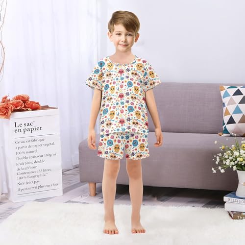 ALAZA Dia De Los Muertos Blossom Sugar Skull Pajamas Set Short Sleeve Cotton Sleepwear Summer Pjs 2 Piece 5-14Y 6