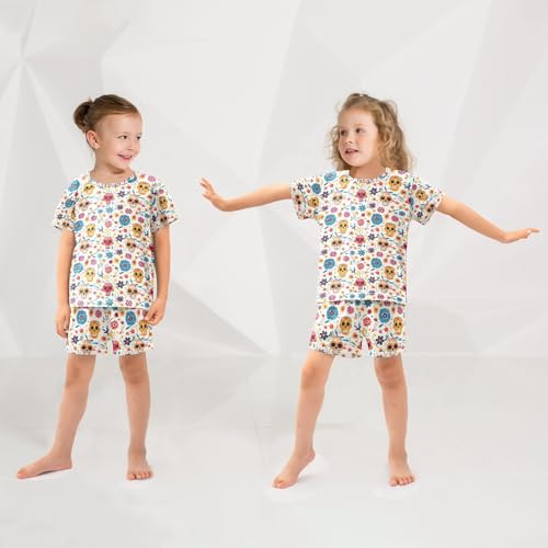 ALAZA Dia De Los Muertos Blossom Sugar Skull Pajamas Set Short Sleeve Cotton Sleepwear Summer Pjs 2 Piece 5-14Y 2