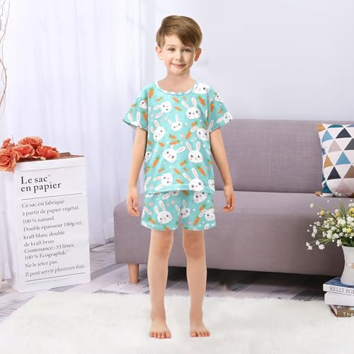 ALAZA Cute Rabbit Carrot Easter Pajamas Set Short Sleeve Cotton Sleepwear Summer Pjs 2 Piece 5-14Y 6