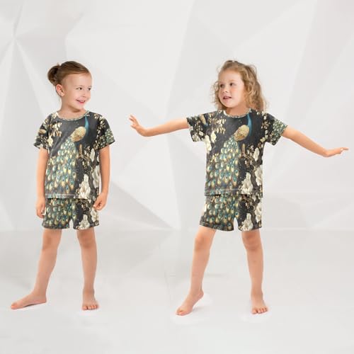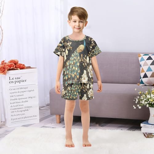 ALAZA Peacock Art Bird Blossom Peony Pajamas Set Short Sleeve Cotton Sleepwear Summer Pjs 2 Piece 5-14Y 2