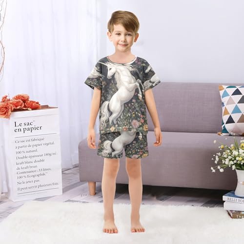 ALAZA Unicorn Blossom Floral Horse Pajamas Set Short Sleeve Cotton Sleepwear Summer Pjs 2 Piece 5-14Y 2