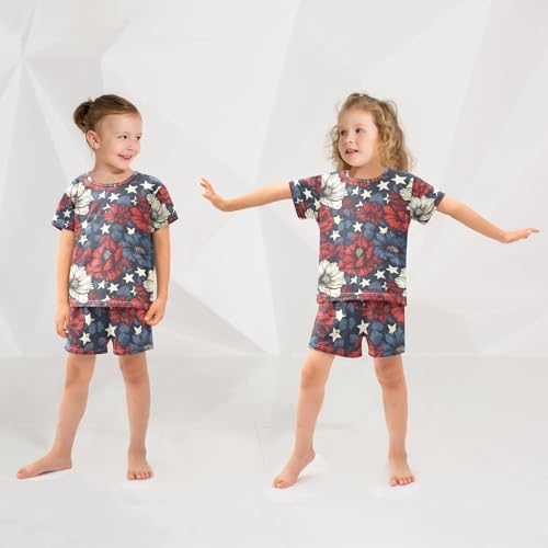 ALAZA Star Blossom Floral Vintage Pajamas Set Short Sleeve Cotton Sleepwear Summer Pjs 2 Piece 5-14Y 2