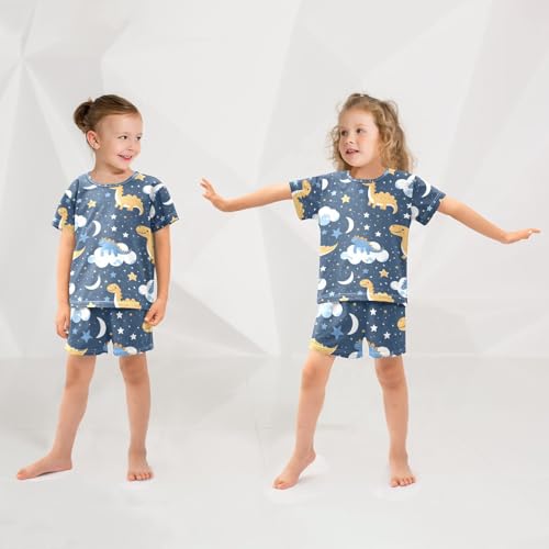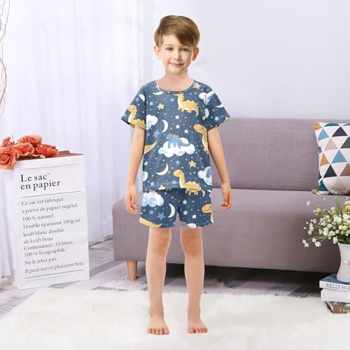 ALAZA Dinosaur Space Moon Starry Pajamas Short Sleeve 2 Piece Sleepwear Top and Bottom Pajama Set Unisex 6