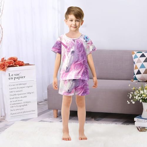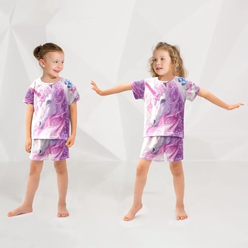 ALAZA Unicorn Butterfly Bubble Pajamas Set Short Sleeve Cotton Sleepwear Summer Pjs 2 Piece 5-14Y 6