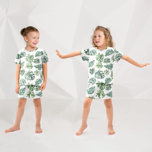 ALAZA Tropical Palm Leaves Watercolor Pajamas Short Sleeve 2 Piece Sleepwear Top and Bottom Pajama Set Unisex 2