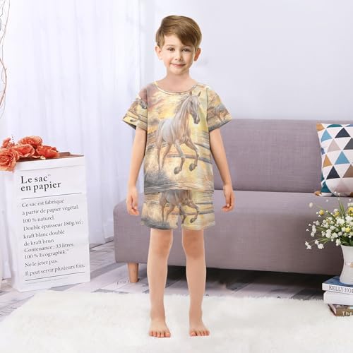 ALAZA Running Horse Ocean Beach Pajamas Set Short Sleeve Cotton Sleepwear Summer Pjs 2 Piece 5-14Y 6