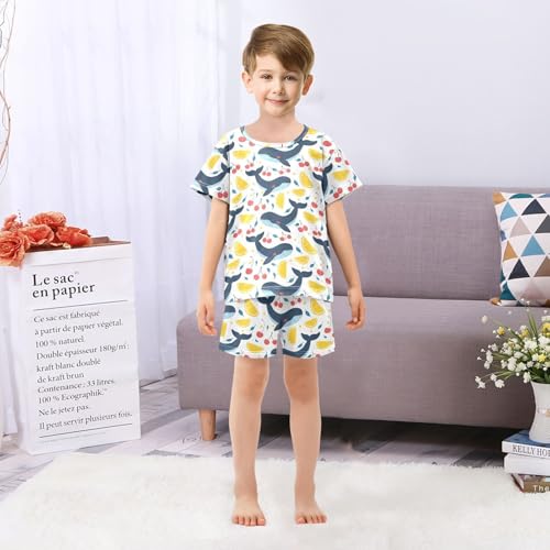 ALAZA Whale Lemon Cherry Cute Pajamas Short Sleeve 2 Piece Sleepwear Top and Bottom Pajama Set Unisex 2
