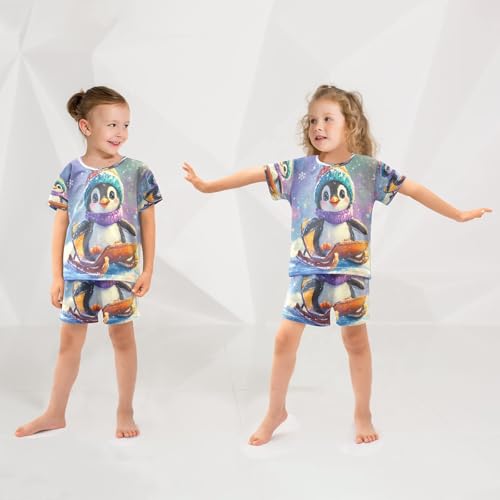 ALAZA Cute Penguin Snowflake Christmas Pajamas Set Short Sleeve Cotton Sleepwear Summer Pjs 2 Piece 5-14Y 2