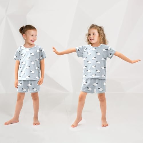 ALAZA Sheep Gray Pajamas Short Sleeve 2 Piece Sleepwear Top and Bottom Pajama Set Unisex 6