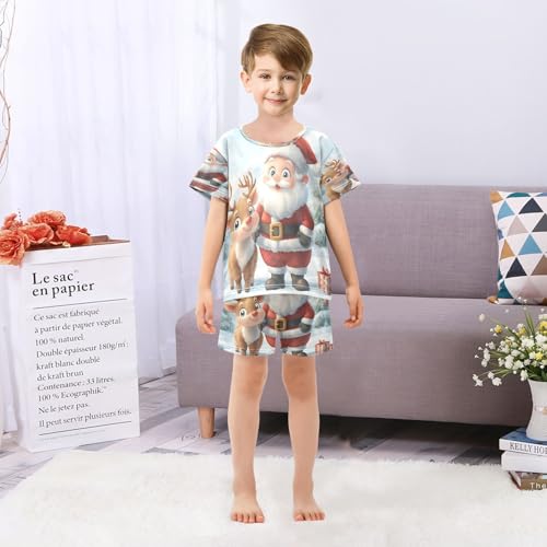 ALAZA Cartoon Santa Claus Deer Merry Christmas Pajamas Set Short Sleeve Cotton Sleepwear Summer Pjs 2 Piece 5-14Y 6