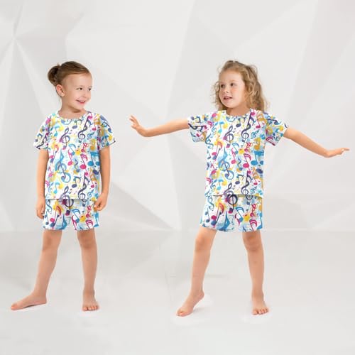ALAZA Colorful Music Notes Dancing Pajamas Set Short Sleeve Cotton Sleepwear Summer Pjs 2 Piece 5-14Y 5