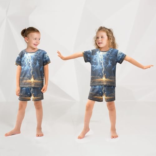 ALAZA American Football Blue Magic Pajamas Set Short Sleeve Cotton Sleepwear Summer Pjs 2 Piece 5-14Y 2