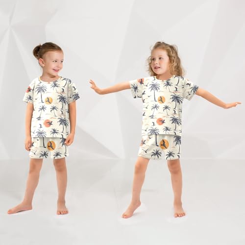 ALAZA Palm Tree Bird Moon Pajamas Short Sleeve 2 Piece Sleepwear Top and Bottom Pajama Set Unisex 6