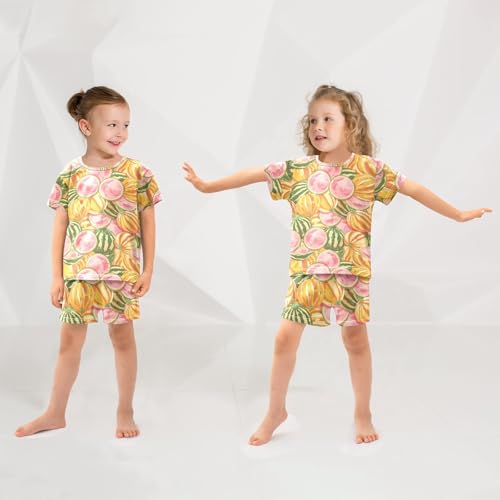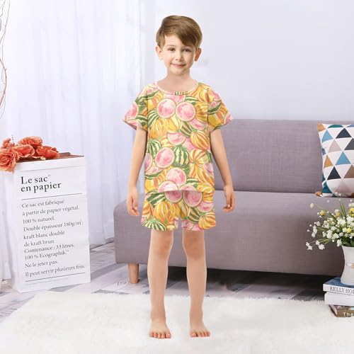 ALAZA Melon Pink Yellow Pajamas Short Sleeve 2 Piece Sleepwear Top and Bottom Pajama Set Unisex 6