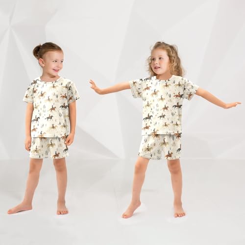 ALAZA Horse Riding Tree Leaf Pajamas Set Short Sleeve Cotton Sleepwear Summer Pjs 2 Piece 5-14Y 6