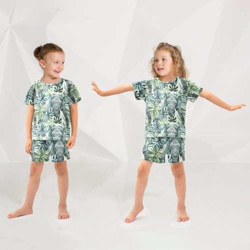 ALAZA Elephant Palm Leaves Watercolor Pajamas Short Sleeve 2 Piece Sleepwear Top and Bottom Pajama Set Unisex 2