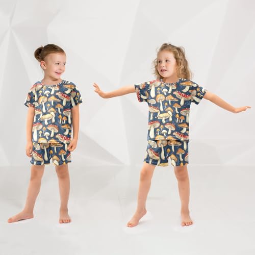 ALAZA Red Mushroom Navy Blue Pajamas Set Short Sleeve Cotton Sleepwear Summer Pjs 2 Piece 5-14Y 2