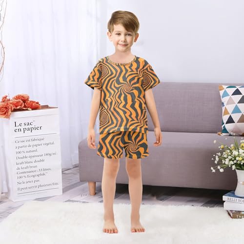 ALAZA Black Yellow Striped Pajamas Set Short Sleeve Cotton Sleepwear Summer Pjs 2 Piece 5-14Y 6