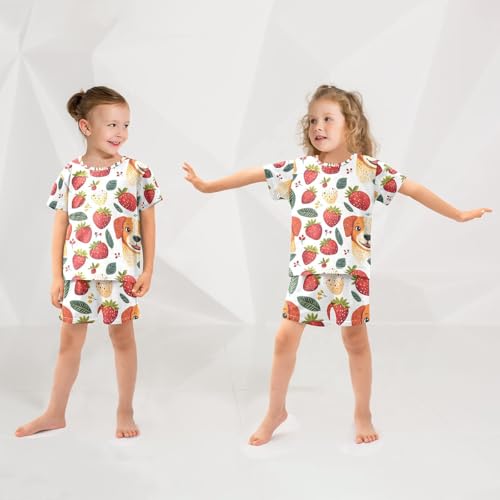 ALAZA Cartoon Dog Strawberry Pajamas Set Short Sleeve Cotton Sleepwear Summer Pjs 2 Piece 5-14Y 2