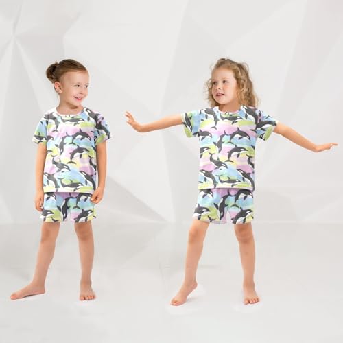 ALAZA Rainbow Dolphin Fish Color Pajamas Short Sleeve 2 Piece Sleepwear Top and Bottom Pajama Set Unisex 6