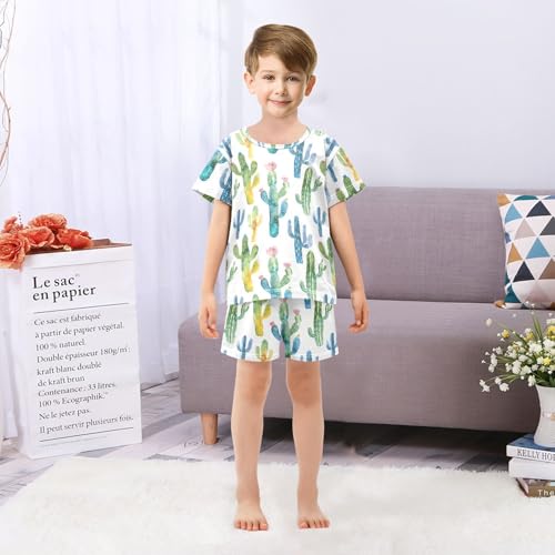 ALAZA Watercolor Cactus Tropical Stylish Pajamas Short Sleeve 2 Piece Sleepwear Top and Bottom Pajama Set Unisex 2