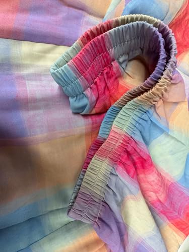 More information about CHARTOU Women Multicolour Plaid Ruffle Elastic Waist Flowy Long Skirt Summer Ruche Color Block Gingham Skirt