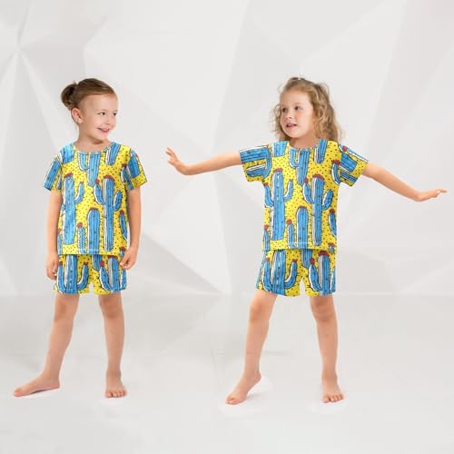 ALAZA Blue Cactus Yellow Pajamas Short Sleeve 2 Piece Sleepwear Top and Bottom Pajama Set Unisex 2