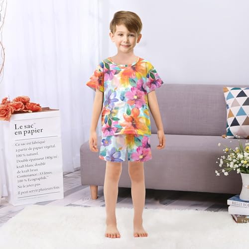 ALAZA Watercolor Blossom Floral Leaf Pajamas Short Sleeve 2 Piece Sleepwear Top and Bottom Pajama Set Unisex 2
