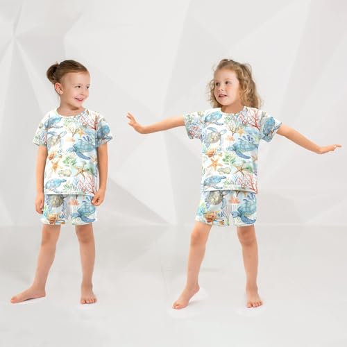 ALAZA Sea Turtle Coral Reef Starfish Pajamas Short Sleeve 2 Piece Sleepwear Top and Bottom Pajama Set Unisex 6