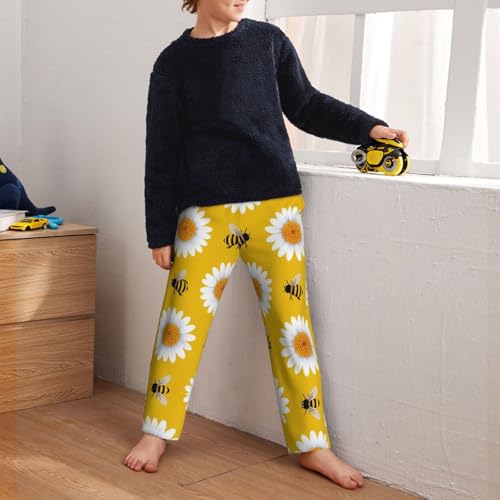 Pajama Pants Pajama Bottoms with Elastic Waistband Sleepwear Lounge PantsBee White Daisy Flowers 1 1