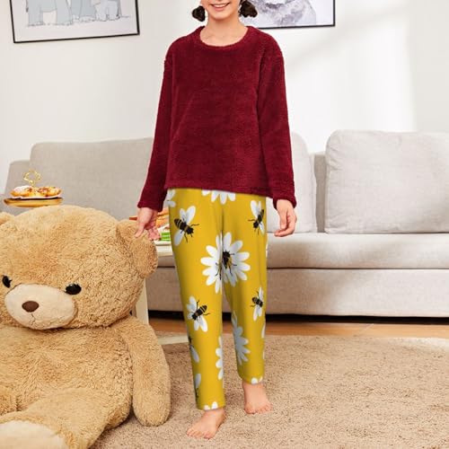 Pajama Pants Pajama Bottoms with Elastic Waistband Sleepwear Lounge PantsAnimal Bee White Daisy Flowers 1 1