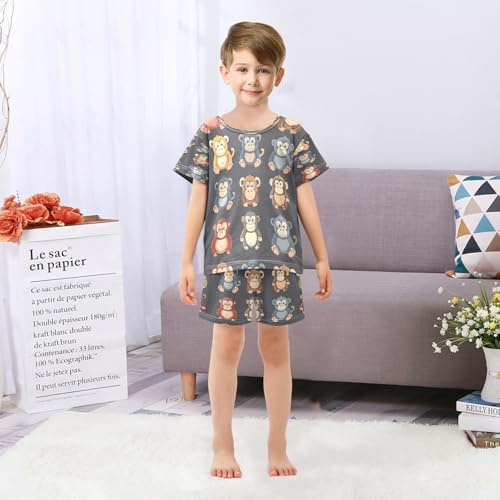 senya Short Sleeve Pajamas Sets Summer Cotton Sleepwear Yellow Red Monkey 2
