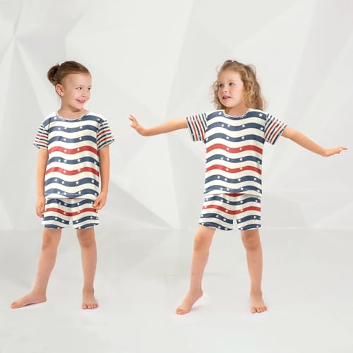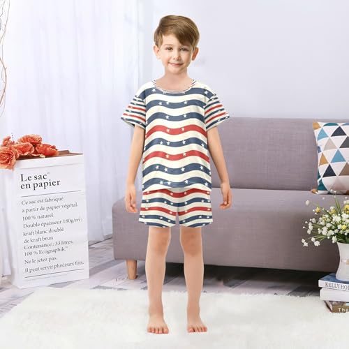 senya Short Sleeve Pajamas Sets Summer Cotton Sleepwear Stripes American Flag 1