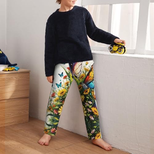 Pajama Pants Pajama Bottoms with Elastic Waistband Sleepwear Lounge Pants, Watercolor Sunflowers Butterfly 1