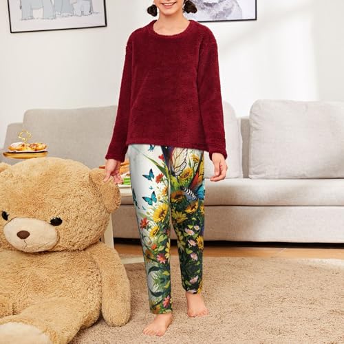 Pajama Pants Pajama Bottoms with Elastic Waistband Sleepwear Lounge Pants, Watercolor Sunflowers Butterfly 2