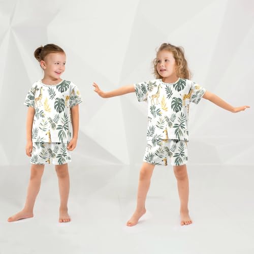 senya Short Sleeve Pajamas Sets Summer Cotton Sleepwear Giraffes and Leaves 2
