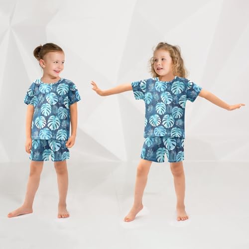 ALAZA Watercolor Palm Leaf Blue Pajamas Short Sleeve 2 Piece Sleepwear Top and Bottom Pajama Set Unisex 2