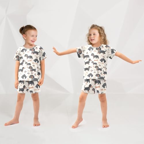 ALAZA Dachshund Dog Bone Paw Print Pajamas Short Sleeve 2 Piece Sleepwear Top and Bottom Pajama Set Unisex 2