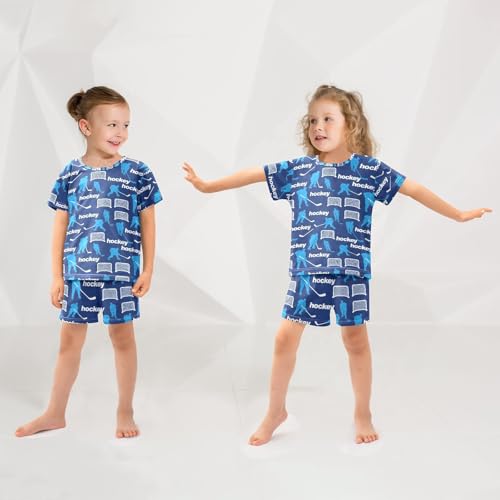 ALAZA Ice Hockey Cartoon Blue Pajamas Short Sleeve 2 Piece Sleepwear Top and Bottom Pajama Set Unisex 2