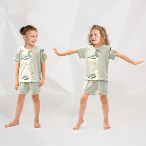 Summer Pajama Set Green White Goose, Short Sleeve Sleepwear Nightwear 2