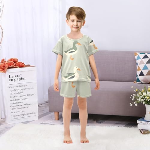 HOT ! Summer Pajama Set Green White Goose, Short Sleeve Sleepwear Nightwear