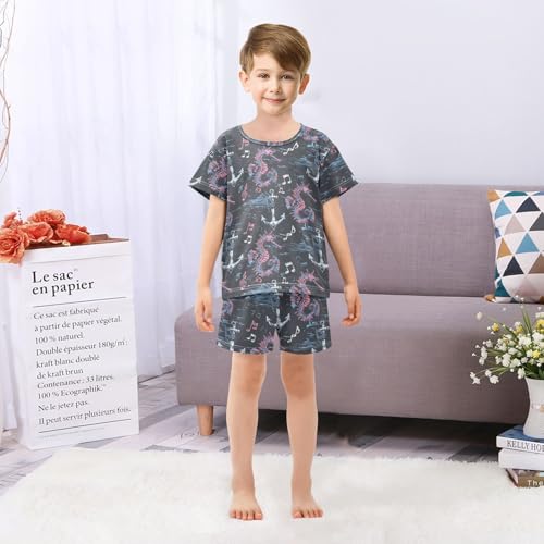 ALAZA Anchor Seahorse Music Notes Pajama Set Short Sleeve Sleepwear Soft Lounge Nightwear 3